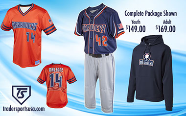 Spring '19 Custom Uniform Package Special Complete package includes: 1 V-Neck jersey, 1 full button front jersey, 1 knicker length pant and 1tackle twill hoodie. Team name, front and back numbers, ghosted back logo are included. Player names are $3.00 additional charge per jersey.